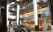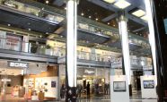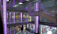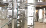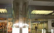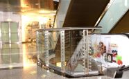Выполнено: Облицовка колонн из гнутых стеклянных панелей; Ограждения из стекла и нержавеющей стали; Подвесная металлическая лестница в торговой галерее; Ограждения на кровле и другие работы.