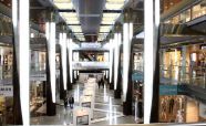 Облицовка колонн стеклянными панелями, капители, декоративный пояс, стеклянные ограждения в торговой галерее