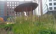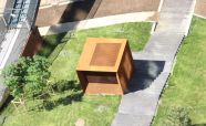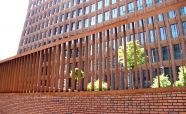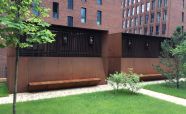 Вентиляционные шахты выполнены из легированной стали «COR-TEN» ЖК «Садовые кварталы» IV квартал. Кортеновые стальные листы имеют бронзовый оттенок, такой эффект достигается в результате окисления легирующих элементов — в этом и есть секрет «вечной» стали с бархатистой фактурой: её окисная пленка не размывается водой, поэтому сталь навсегда сохраняет свой благородно-коричневатый цвет и не поддаётся коррозии